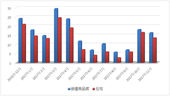 201612月—201711月新建商品房和住宅成交面积对比图