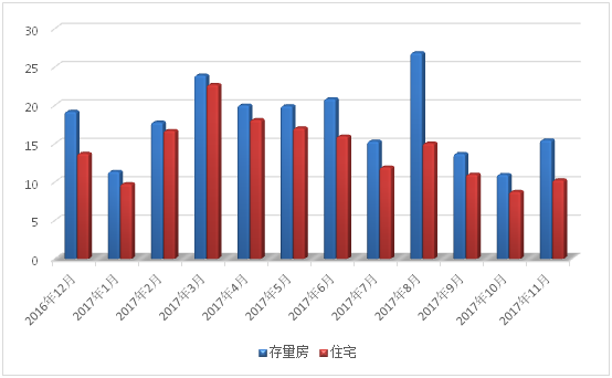 201612月—201711月二手房和住宅成交面积对比图